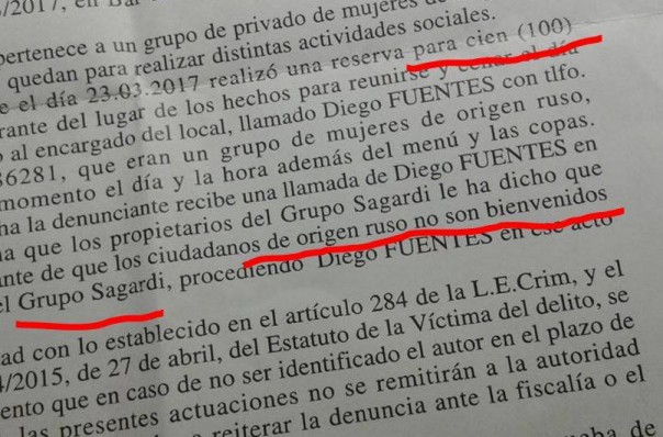 Скандал разгорелся в Мадриде. Анастасия Самоторова, представляющая русскоязычное женское сообщество Мадрида, зарезервировала бар в ресторане Sagardi на 1 апреля. Женщины периодически встречаются и устраивают небольшие праздники на 100-150 человек. За два дня до мероприятия Анастасии перезвонил менеджер ресторана и сообщил об аннулировании резерва. На закономерный вопрос «почему?», он ответил, что люди происхождением из России «не формат» заведения Sagardi и не приветствуются в его ресторанах.