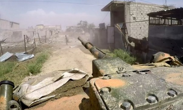Наша съемочная группа сопровождала операцию и стала свидетелем краха обороны террористов в районе Хаджар аль-Асуад. Нам удалось заснять много эксклюзивных кадров, в том числе танковых боев в городских кварталах. Anna-news
