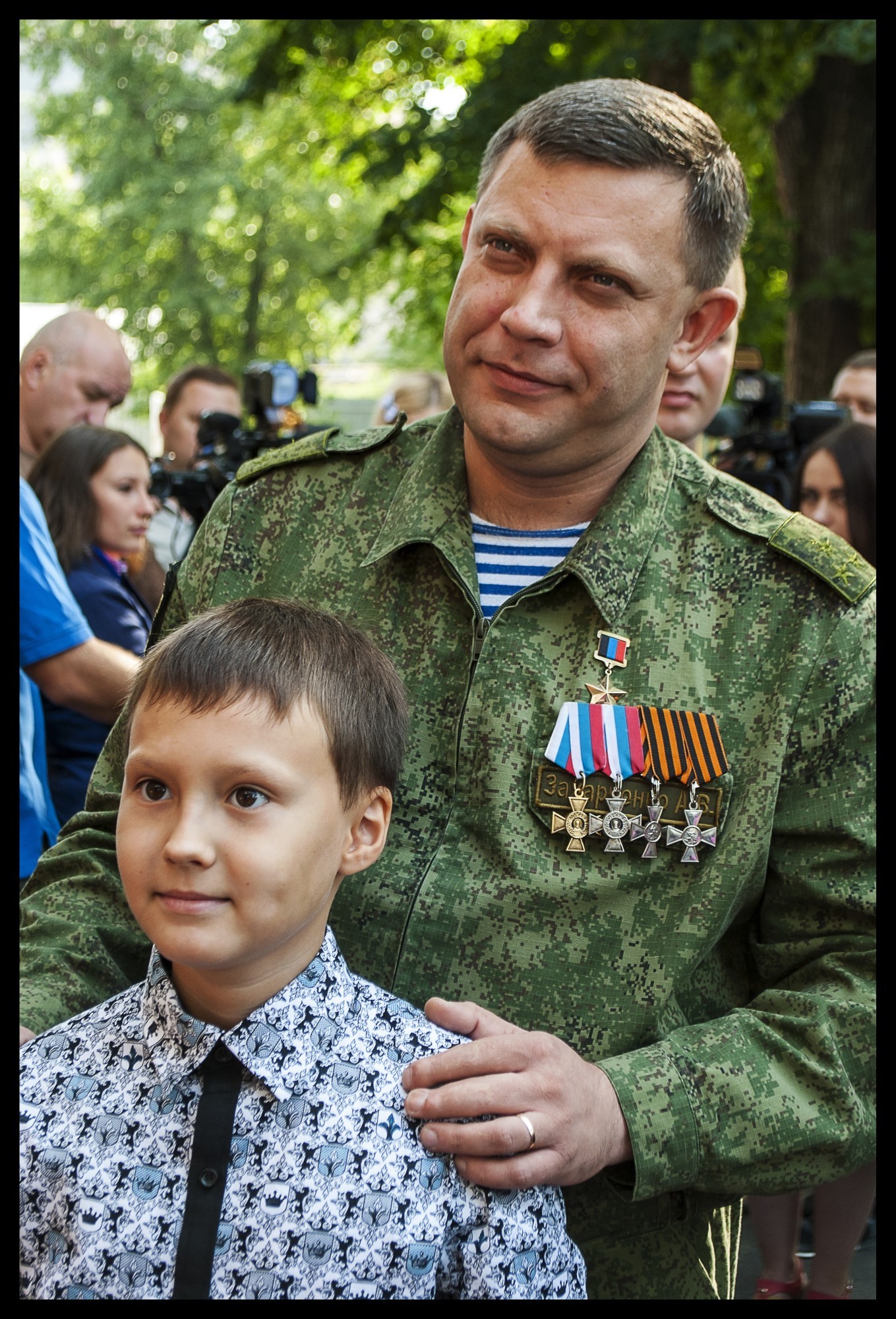 После я вспомнил мой, должно быть, самый знаменитый снимок, которым я безумно горжусь. Утром 9 мая 2015 года в Донецке проходил первый военный парад в честь Дня Победы. У меня не было никакого желания его снимать, но всё же я решил сделать несколько кадров «для себя». Одним из них стал снимок, который буквально стал вирусным. Несколько раз я встречал его в сувенирных лавках, его вешали чиновники в своих кабинетах, а кто-то даже делал с него рисунки. На том фото был Александр Захарченко в парадной форме, с медалями и звездой Героя ДНР.