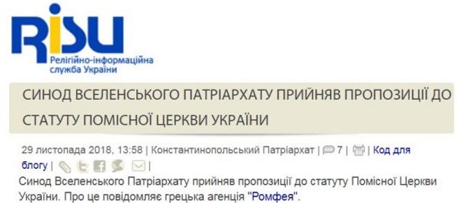 Затем на ресурсе был «подправлена» сама «горячая новость с Фанара». По «новой версии» оказывалось, что «Синодом Константинопольского патриархата приняты предложения в устав Поместной Церкви Украины». Аналогично – лишь на «предложения к уставу» изменила заголовок и униатская информационная служба.