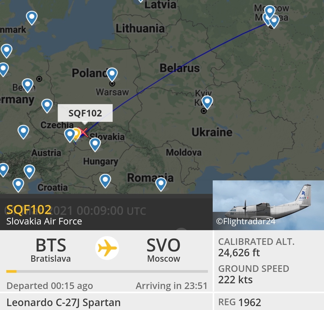 Второй борт словацких ВВС летит в Москву. Первый вернулся несколько минут назад и приземлился в Кошице (восток Словакии).