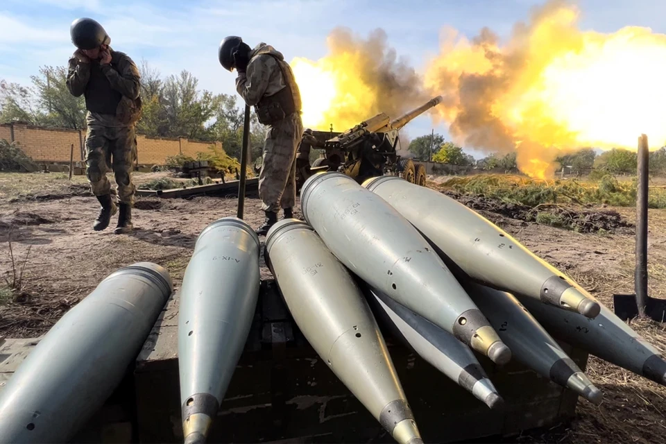 152-мм гаубицы «Гиацинт-Б» под звон в ушах выплевывают снаряды, окутывая позиции пороховой дымкой.
