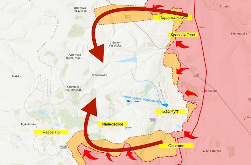 Украинский Генштаб признает, что остановить продвижение российских войск уже невозможно — можно лишь его замедлить. Бахмутская группировка взята в кольцо, сейчас российские войска заходят в город с северной и юго-западной сторон. В полукольце также Северск — в ближайшее время будут сметены украинские позиции восточнее и юго-восточнее города.