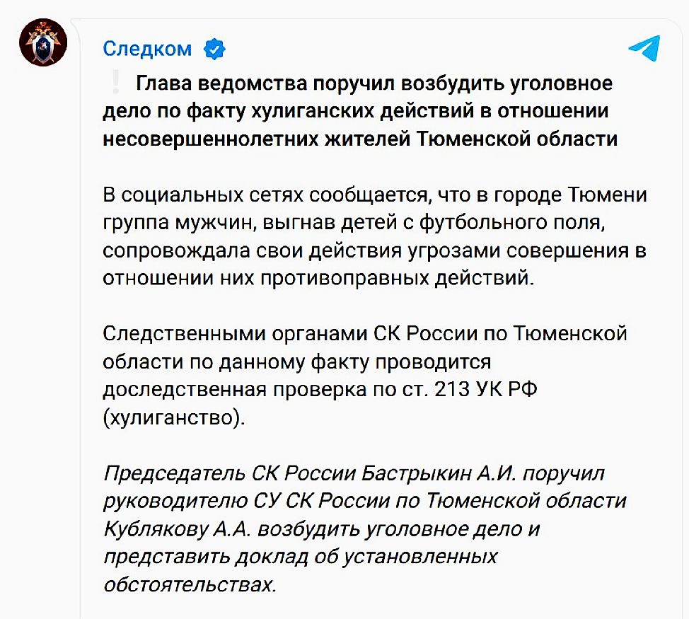 Но «маленький конфликт» стал слишком резонансным и дело дошло до главы СК Александра Бастрыкина, который дал соответствующее поручение.