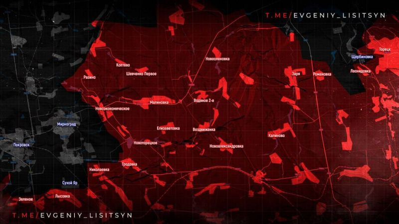 Освобождено ЗВЕРЕВО, идёт штурм ЛЕОНТОВИЧЕЙ. ВС РФ также продвигаются в районе НОВОЭКОНОМИЧЕСКОГО и шахты «КАПИТАЛЬНАЯ». ДРГ фиксируются в ПОКРОВСКЕ и у МИРНОГРАДА.